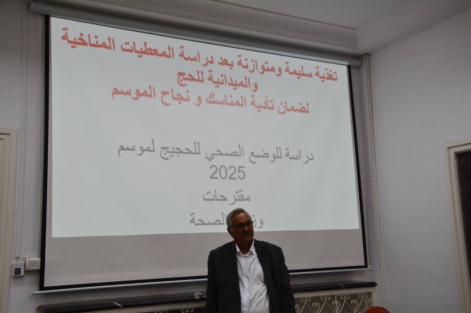 وخصّص الاجتماع للنّظر في الترتيبات و الاستعدادات لموسم الحجّ 1447هـ/2026م واطّلع الحضور على عرض أعدّه معهد التغذية يبيّن ما يجب توفّره للحاجّ من إعاشة خلال سفره وكذلك على عرض يبرز الشّروط الفنيّة للخدمات في البقاع المقدّسة في ما يتعلّق بالسّكن في مكّة المكرّمة والمدينة المنوّرة والمشاعر، وتمّ أيضا مناقشة مواعيد رحلات الذهاب والعودة لحجيجنا الميامين.
